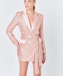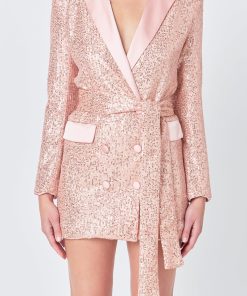 Endless Rose Women’s Sequins Belted Blazer | Black & Silver|rose Gold