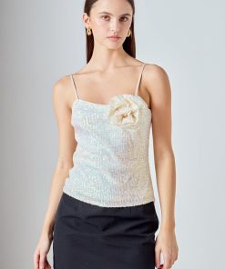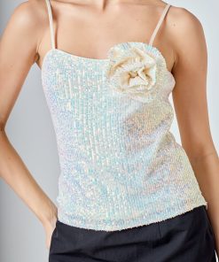 Our Sequins Corsage Top is an effortlessly stylish and eye-catching top for any special occasion. This top is decorated with beautiful sequins and a corsage detail creating an outstanding look. The fitted design and shoulder strap flatters your body shape granting you an attractive and sophisticated silhouette.