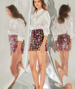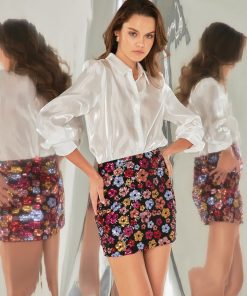 Step out in style with our Sequins Mini Skirt! This eye-catching piece is adorned with shimmering sequins that will make you stand out in any crowd. The mini length adds a touch of playfulness to your look while the regular fit ensures a flattering silhouette. With a convenient side zipper this skirt is both fashionable and functional. Perfect for a night out or a special occasion this skirt is a must-have for every fashion-forward woman. Get ready to sparkle and shine in our Sequins Mini Skirt!