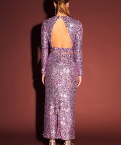 Endless Rose Women’s Sequins Open Back Top | Pink Lemonade|amethyst