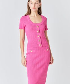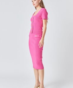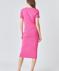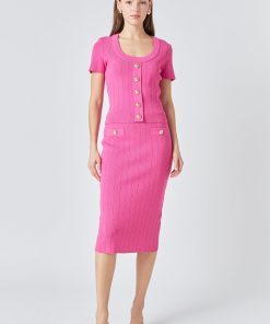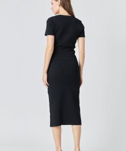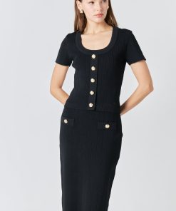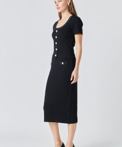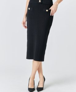 This knitted midi skirt features rib band at waist and front buttons that add a unique touch. The skirt provides excellent comfort and style making it a must-have for your wardrobe. It can be worn casually or dressed up for a special occasion. The fashionable midi length coupled with the shank buttons make this skirt a must-have for any fashionista. The skirt is comfortable durable and stylish making it perfect for any occasion. So don’t miss the chance to snag this amazing skirt!