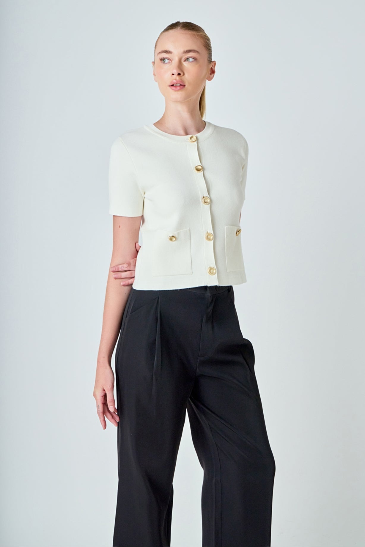 Elevate your casual style with our Short Sleeve Button-Up Cardigan. Crafted from luxuriously soft knit fabric, this versatile piece offers comfortable all-day wear and effortless layering. The classic button-up design and short sleeves make it perfect for transitioning between seasons. With a flattering slim fit and ribbed detailing on the cuffs and hem, this cardigan offers a modern twist on a timeless style. Iit’s the perfect addition to any wardrobe. Shop now and experience comfort and style in one!