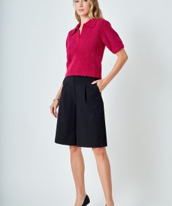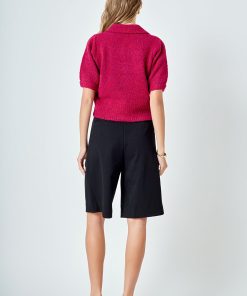 Elevate your everyday style with this must-have sweater. With a versatile and stylish design, this short-sleeve-collared sweater can be dressed up or down to fit any occasion. Made from a soft and lightweight material, it’s perfect for layering on chilly days. Whether you’re heading to work or out for dinner with friends, this essential sweater is a must-have in your wardrobe.