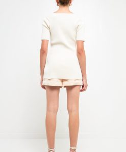 - Scooped neckline