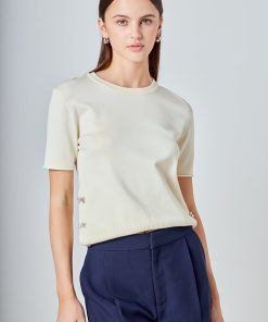 The Side Bow Buttoned Knit Top combines cozy comfort with refined detail. Crafted from a soft, stretch knit, it features an elegant side bow and classic shoulder button accents that add subtle sophistication. Designed for effortless layering or standalone wear, it transitions seamlessly from work to weekendbringing understated polish to every look.