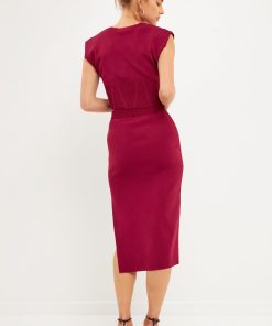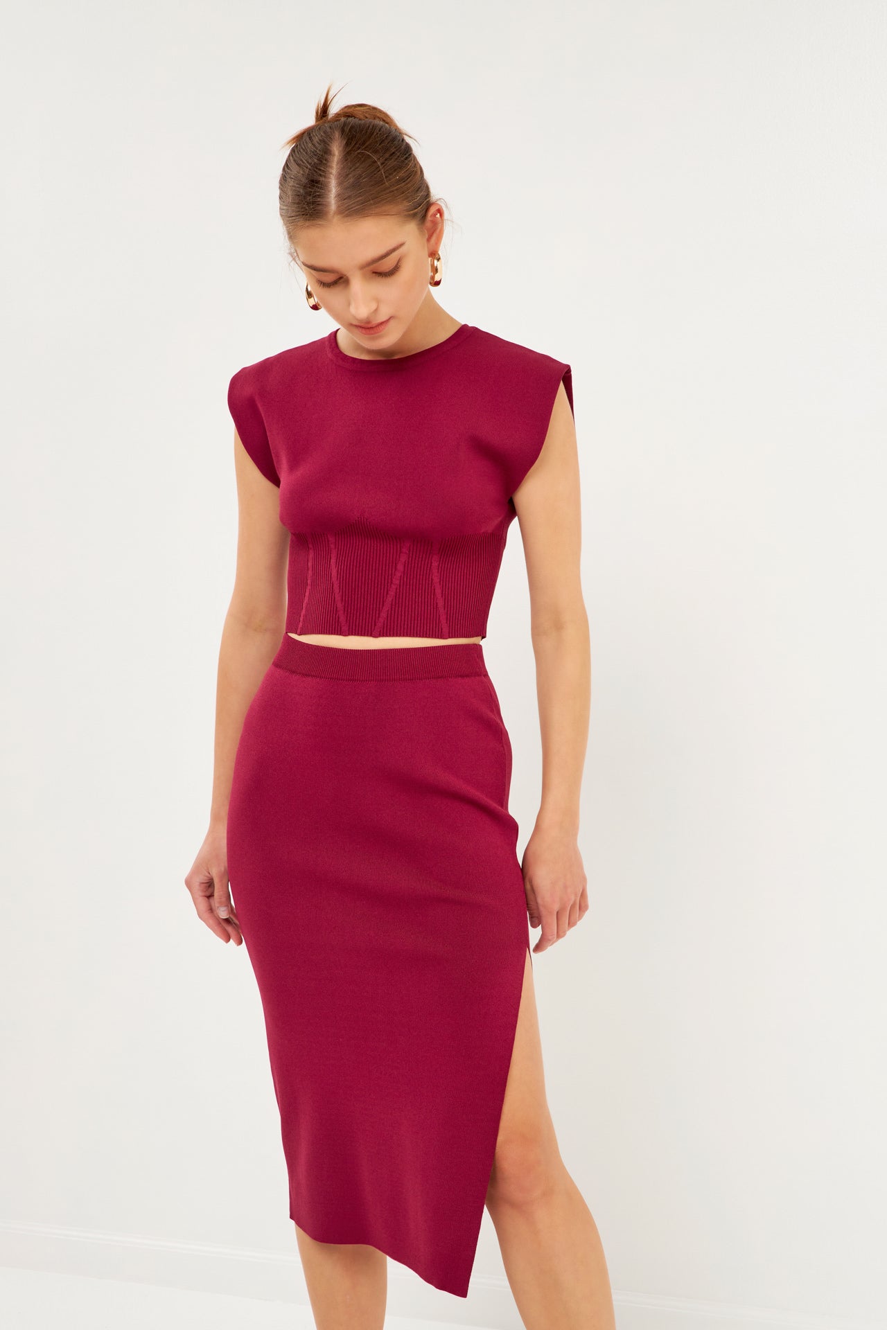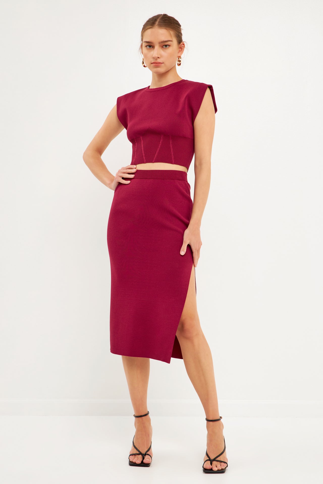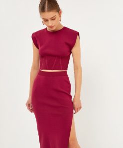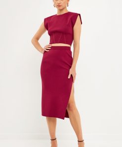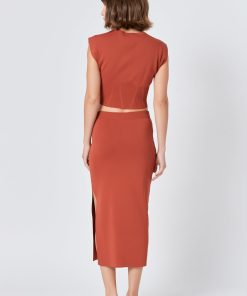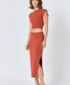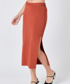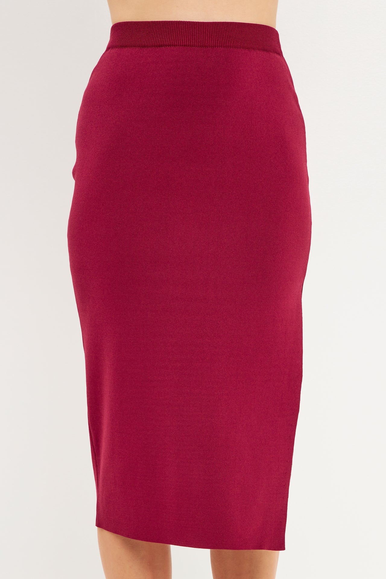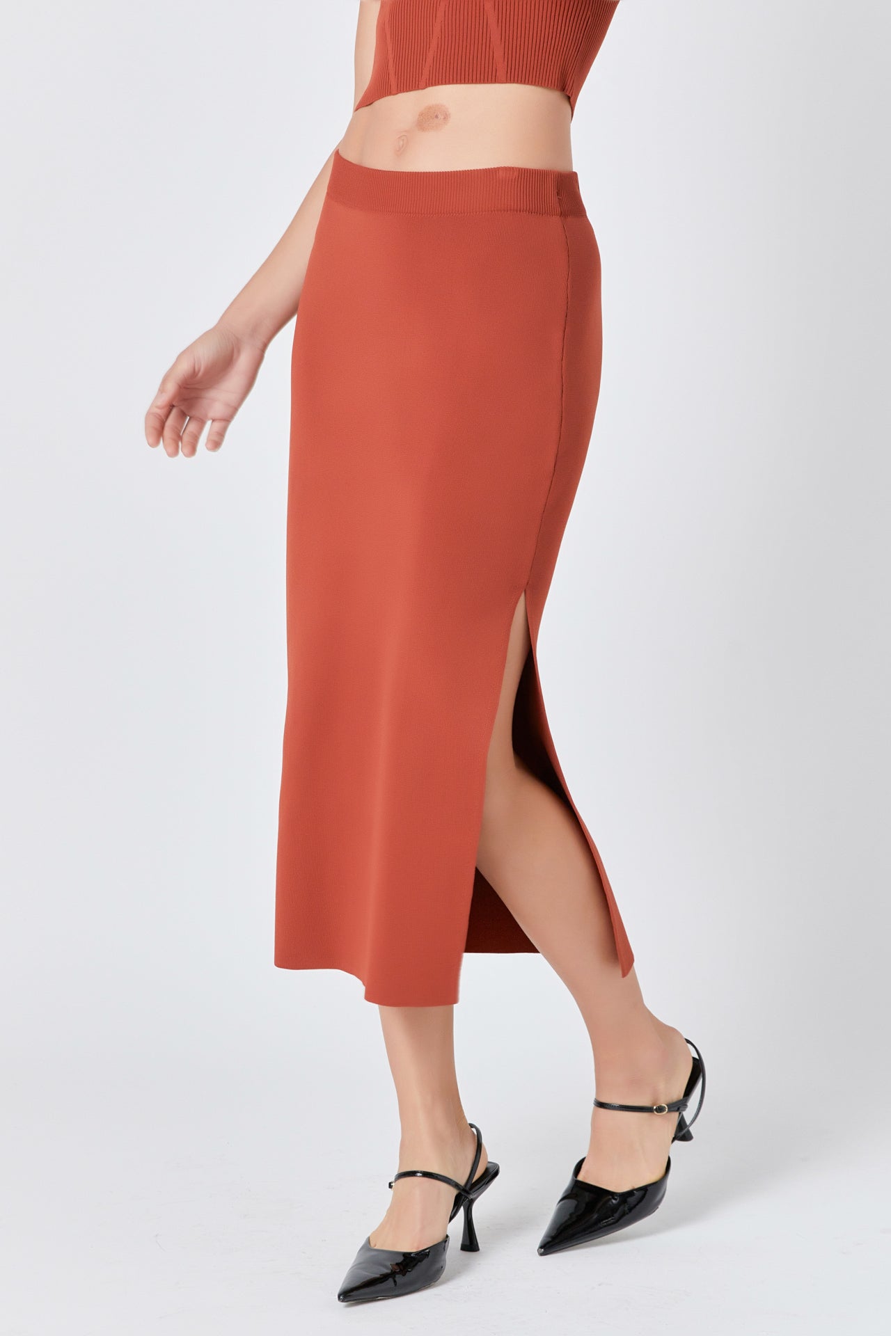 Endless Rose Women’s Side Slit Detailed Knit Midi Skirt | Burnt Orange|pink|burgundy