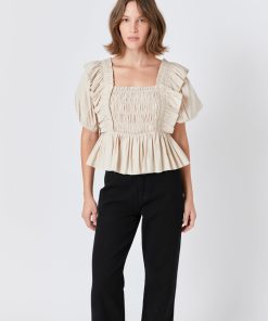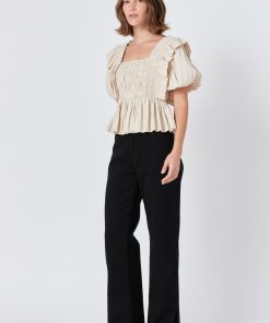 The ruffles and smocked details of this top are so fun and unique that you’ll want to wear this top with every outfit. It also has the puffy sleeves that you’ve come to love from us and a peplum hem to emphasize the feminine style. Whether you style this top with faux leather pants and heels for date night or wear it with jeans and slides to run errands you’ll look amazing!