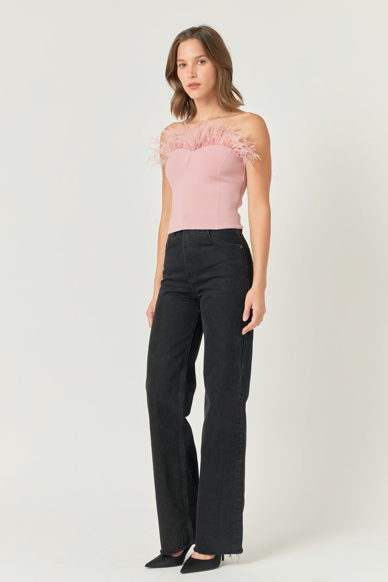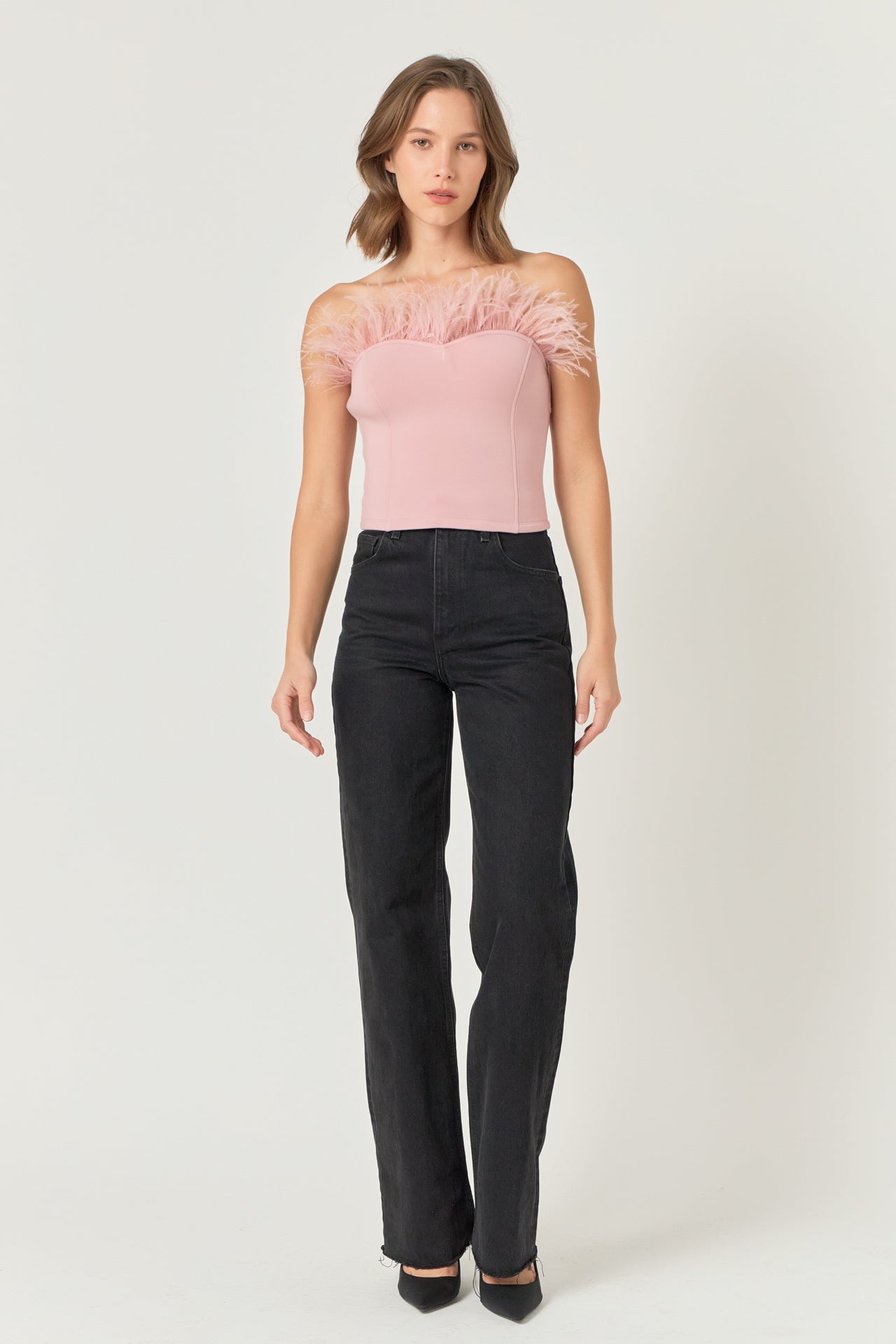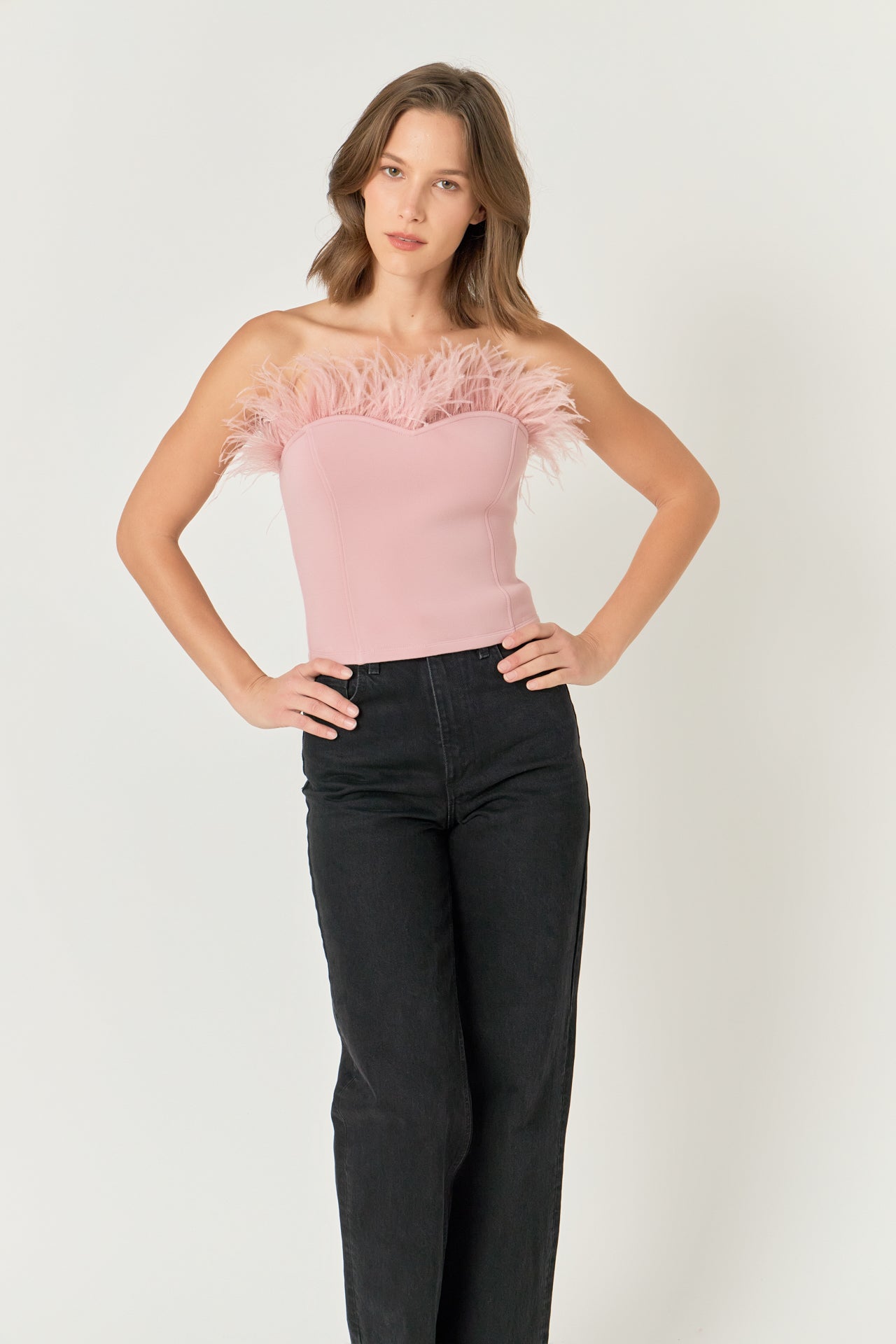 - Feather trimmed