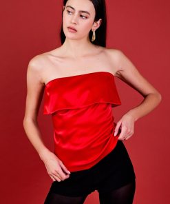 Look chic and stylish in this Strapless Satin Top. The luxe satin fabric and center back invisible zipper closure create an ultra-flattering fit. To ensure your top stays put silicone tapes have been included at the neckline. Show off your curves and flaunt your look with this stylish and modern top.