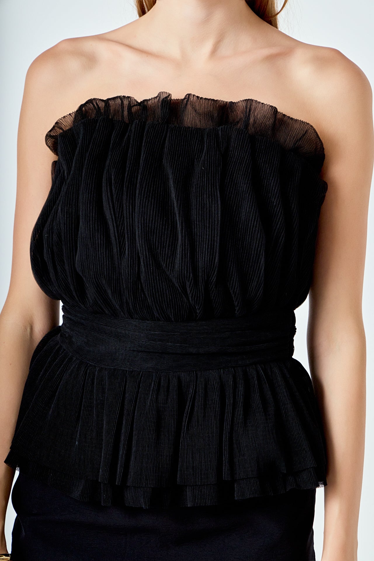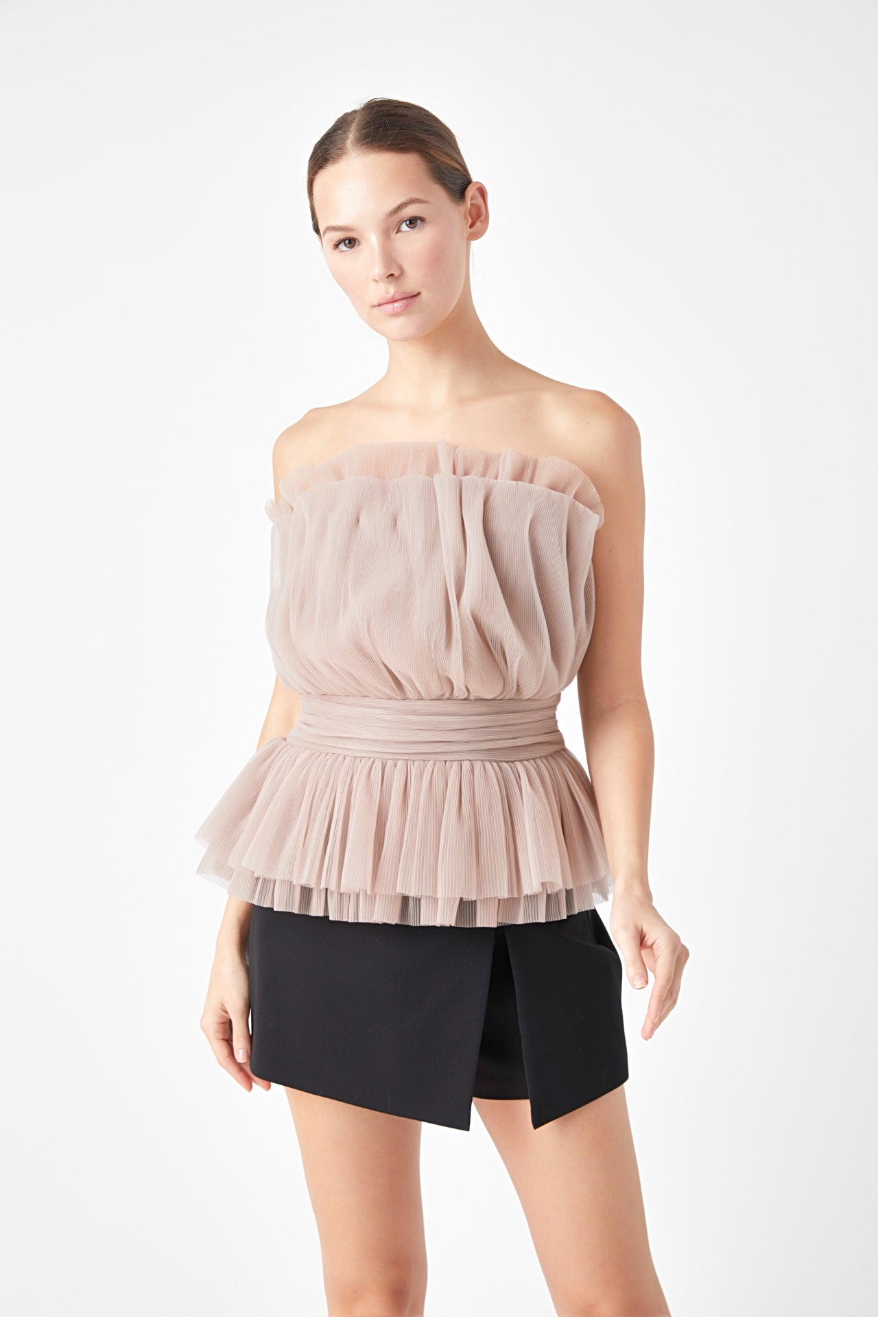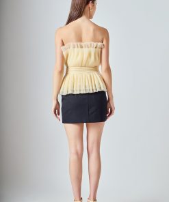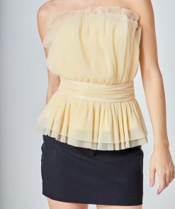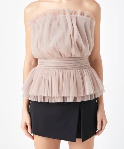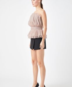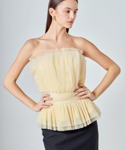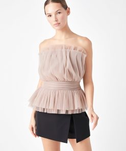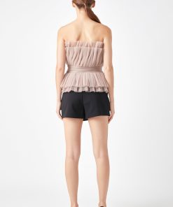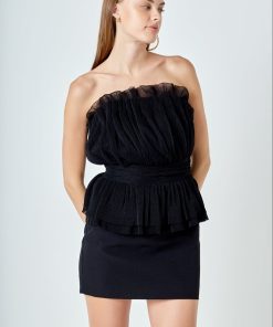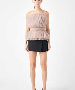 Endless Rose Women’s Strapless Tulle Banded Top | Ivory|black|taupe