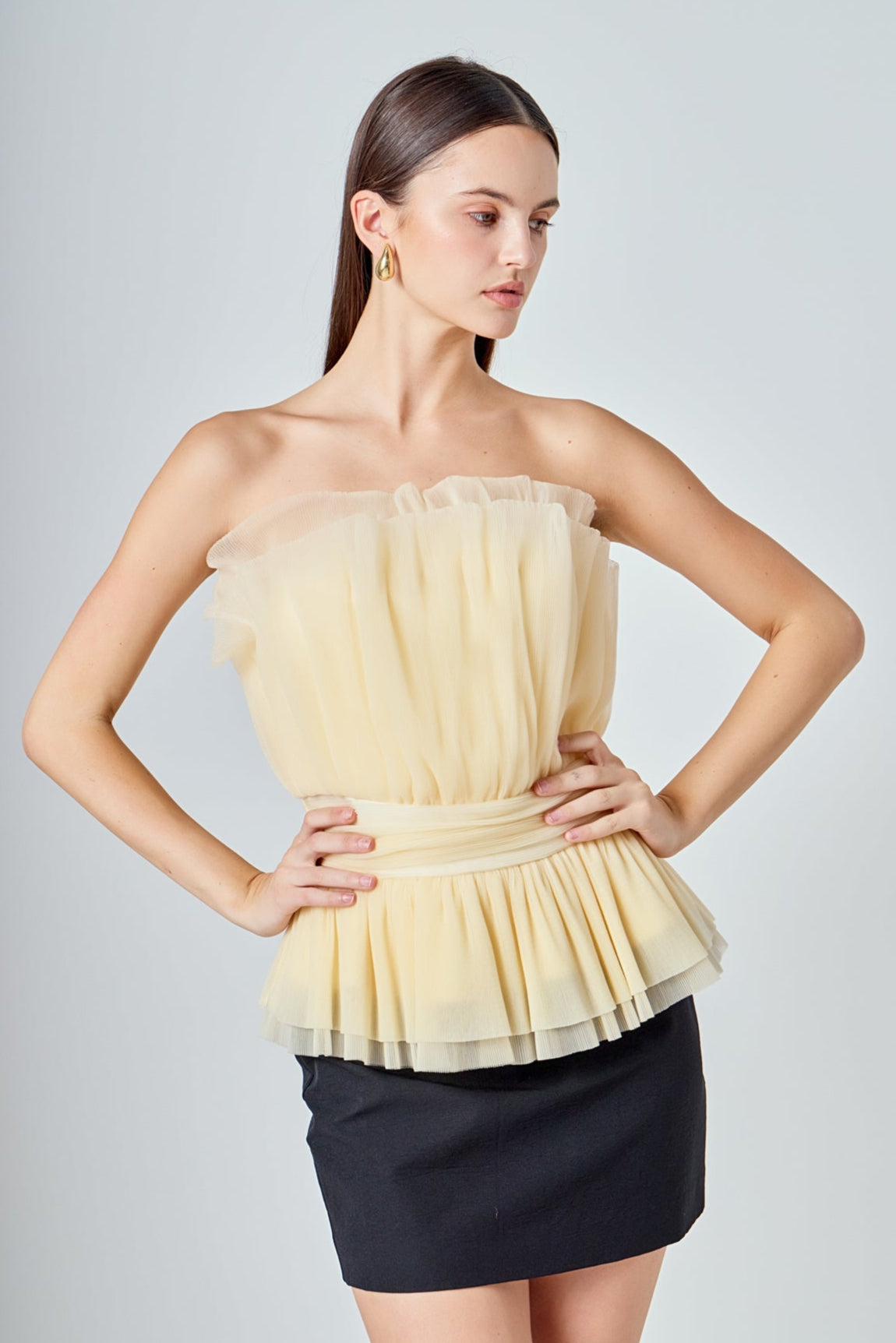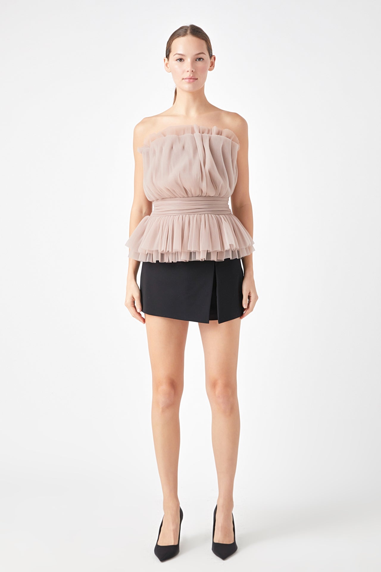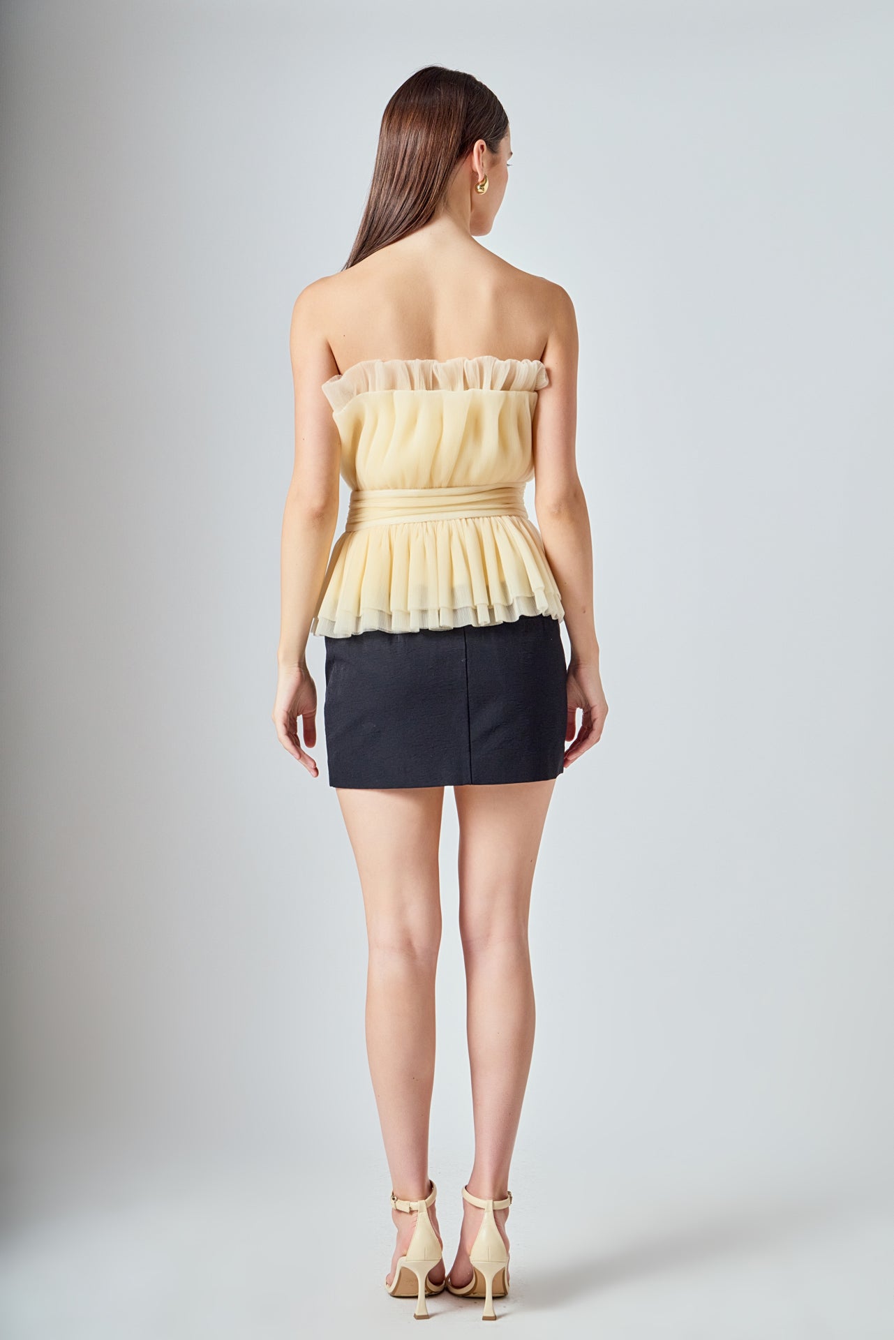 Endless Rose Women’s Strapless Tulle Banded Top | Ivory|black|taupe