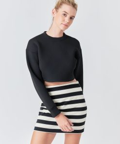 Introducing our Stripe Terry Skirt – the perfect addition to your skirt collection! Made with comfortable and high-quality fabric this mini length skirt features a timeless stripe pattern that will elevate any ensemble. The waist is designed with hidden elastic for a flattering and comfortable fit while the side invisible zipper adds a touch of sophistication. Perfect for any occasion this skirt will become your go-to piece. Don’t miss out on the must-have trend of stripes and add our Stripe Terry Skirt to your wardrobe now! Order yours today and embrace effortless style.