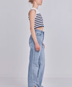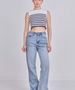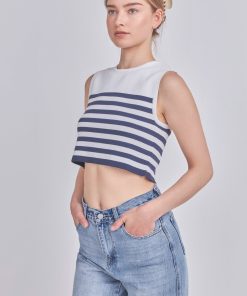 Make a statement with our Striped Knit Top! With its round neckline and sleeveless design, this top is perfect for any season. The classic stripes add a touch of chic to any outfit, while the soft knit fabric ensures comfort. Hand wash it cold to keep it looking brand new. Perfect for any occasion, this top is versatile and easy to style. Upgrade your wardrobe with this must-have piece that is sure to turn heads. Shop now and add this trendy item to your collection!