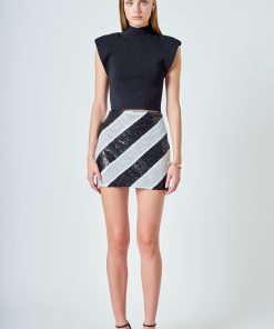 Our amazing Striped Sequins Skirt is the perfect way to bring sparkle to any wardrobe. This mini length skirt features a luxurious lining for luxurious comfort. It reflects light to bring out the wonderful vibrancy of the sequins. This skirt is sure to draw attention and take your look to the next level. Add it to your wardrobe today!