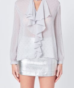 Show off some modern style with this Tied Ruffle Blouse. Crafted with a V neckline this blouse features a high collar with a tied bow design as well as fluttering ruffle details. It’s finished with long sleeves and cuffs. A perfect combination of sophistication and poise this on-trend blouse will elevate any outfit. Get ready for compliments!