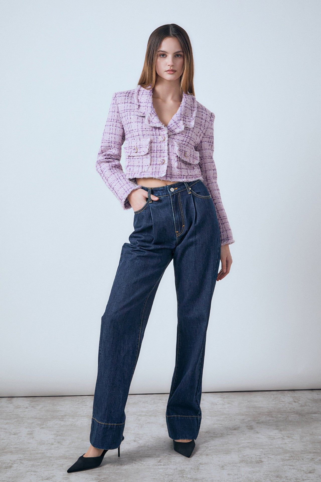 This Tonal Boucle Tweed Short Blazer is a great way to add an edge to your style! Crafted from tweed fabric this cropped blazer has long sleeves and two button closures. Perfect for adding an extra layer of style and warmth to your look this blazer is sure to make you stand out from the crowd. It makes a great addition to any wardrobe for a classic look with a modern twist. It’s perfect for business and casual occasions and sure to become your favorite piece of outerwear