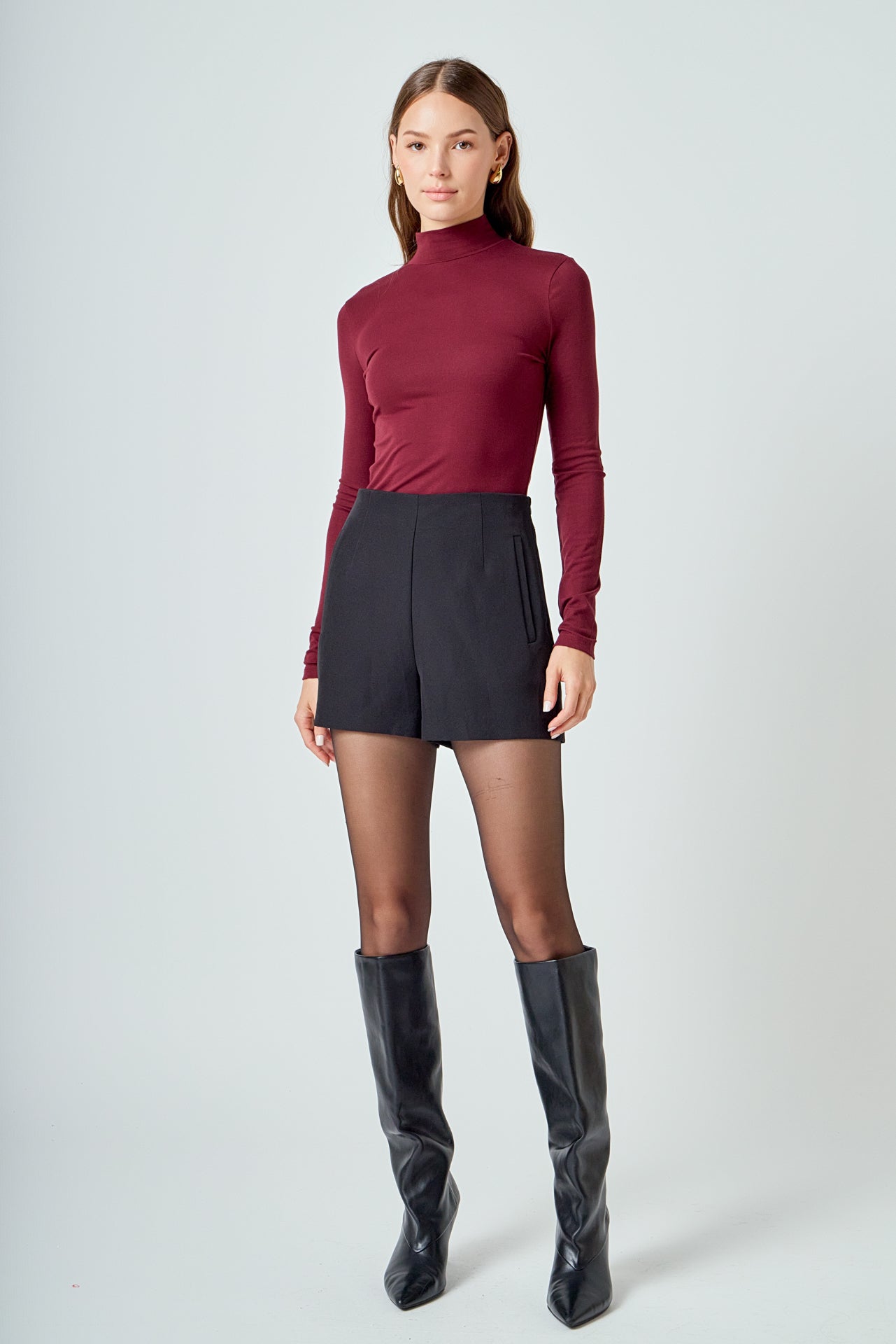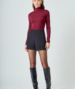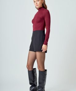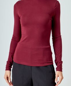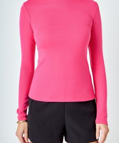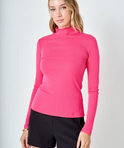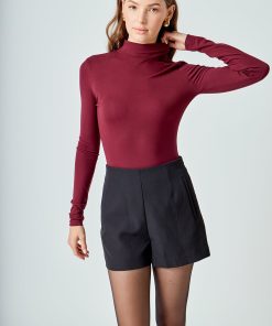 A fitted bodice and long sleeves make this top perfect for chilly weather. The turtleneck provides extra coverage and warmth. The stretchy knit fabric is comfortable and moves with you. This top is sure to become a cold-weather favorite.