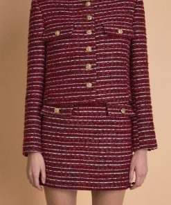 Elevate your wardrobe with our Tweed Jacket! The round neckline and long sleeves with gold buttons add a touch of sophistication to your look. The shoulder pads enhance your silhouette while the front chest welt pocket with flap adds functionality. This timeless piece is perfect for both formal events and everyday wear. Made with high-quality tweed material, it promises durability and style. Complete your outfit with this must-have jacket and make a statement. Get your hands on our Tweed Jacket now and turn heads wherever you go!