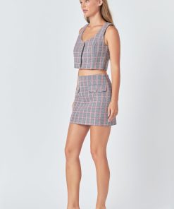 This chic mini tweed skirt is perfect for everyday wear! Crafted from grid tweed fabric with a fitted silhouette it features a unique front pocket with button detail for added style. The perfect combination of fashion and function the mini length makes it versatile and easy to style. Enjoy the sophisticated look of this skirt – head turning style and comfort you’ll love!
