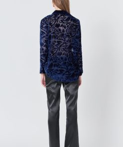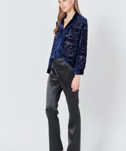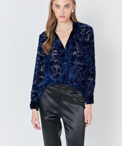 Endless Rose Women’s Velvet Burnout Collared Top | Navy
