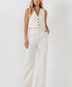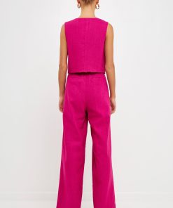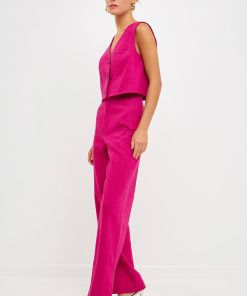 Endless Rose Women’s Wide Leg Linen Pants | Berry|ivory