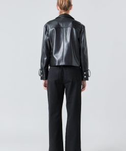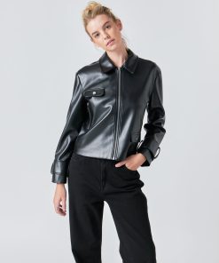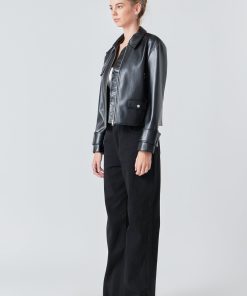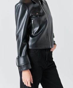 Endless Rose Women’s Zip Up Cropped Faux Leather Jacket | Black