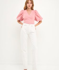 Endless Rose Women’s Puff Sleeve Peplum Top | Burgundy|fuchsia|tan|powder Blue|pink|white|black