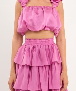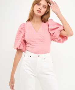 Endless Rose Women’s Puff Sleeve Peplum Top | Burgundy|fuchsia|tan|powder Blue|pink|white|black