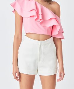 Endless Rose Women’s Ruffled Asymmetrical Bodysuit | Green|orange|black|powder Blue|white|pink