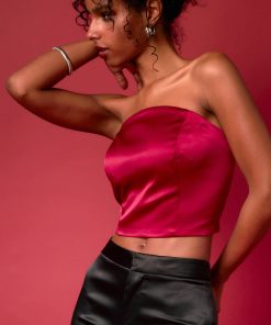 Endless Rose Women’s Satin Strapless Curved Bustier | Ruby|teal|red|black|clean Blue|orange